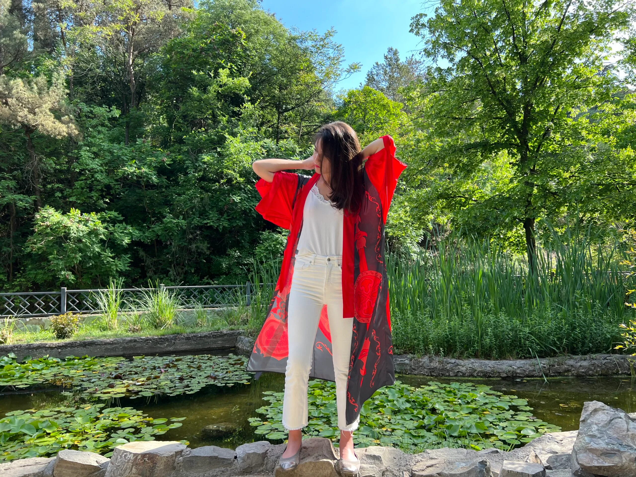 ხელით დახატული აბრეშუმის მოსაცმელი JEIRANI — მათთვის, ვისაც სურს კაშკაშებდეს, გრილად და ჰაეროვნად ატარებდეს ზაფხულს, იხალისებდეს ცხოვრებას სასიამოვნო, ნაზი, ფერადოვანი აბრეშუმის შეგრძნებით.