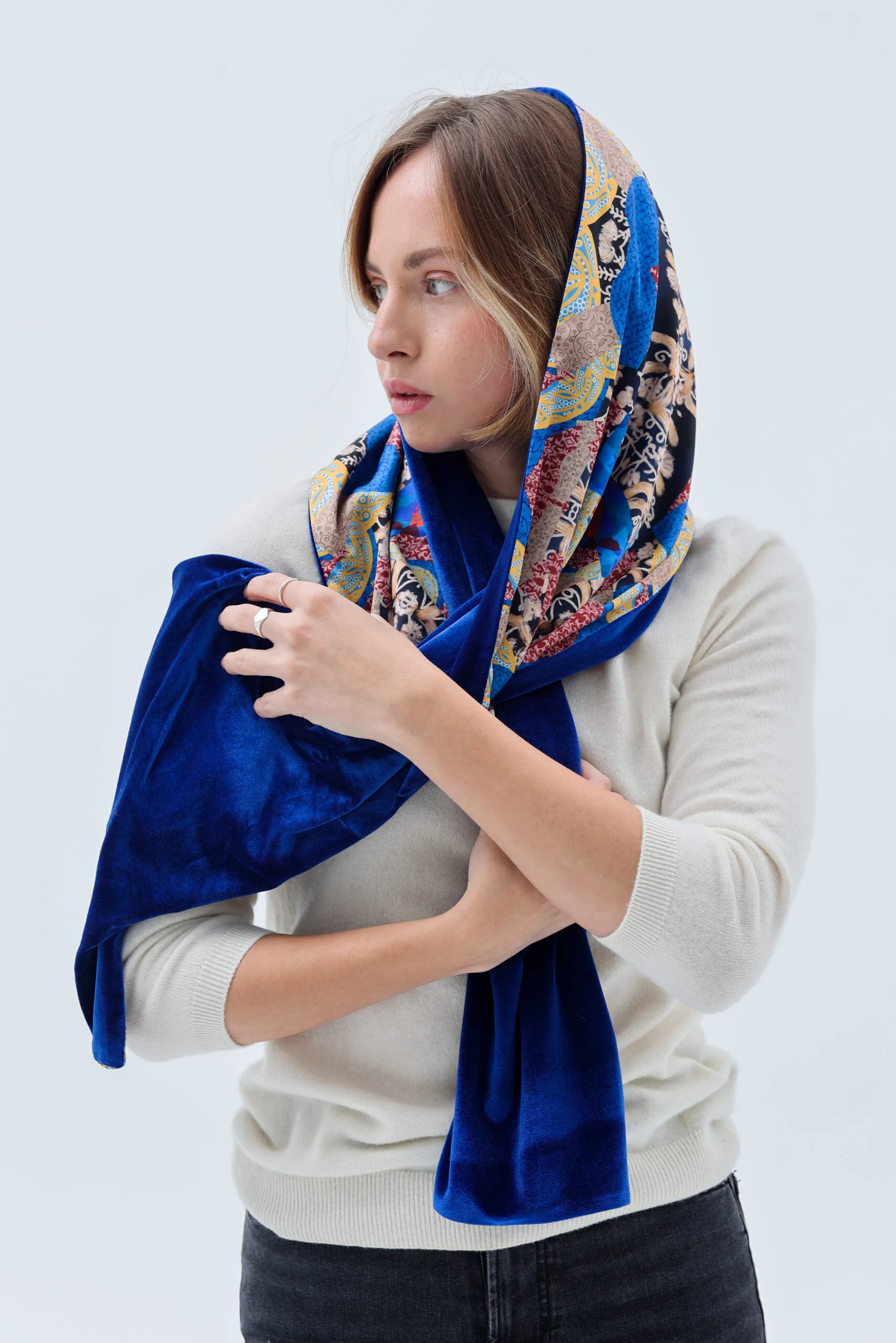 ნაზი და ჰაეროვანი აბრეშუმის ორმხრივი თავსაბურავი. გაიფერადე ყოველდღიურობა.