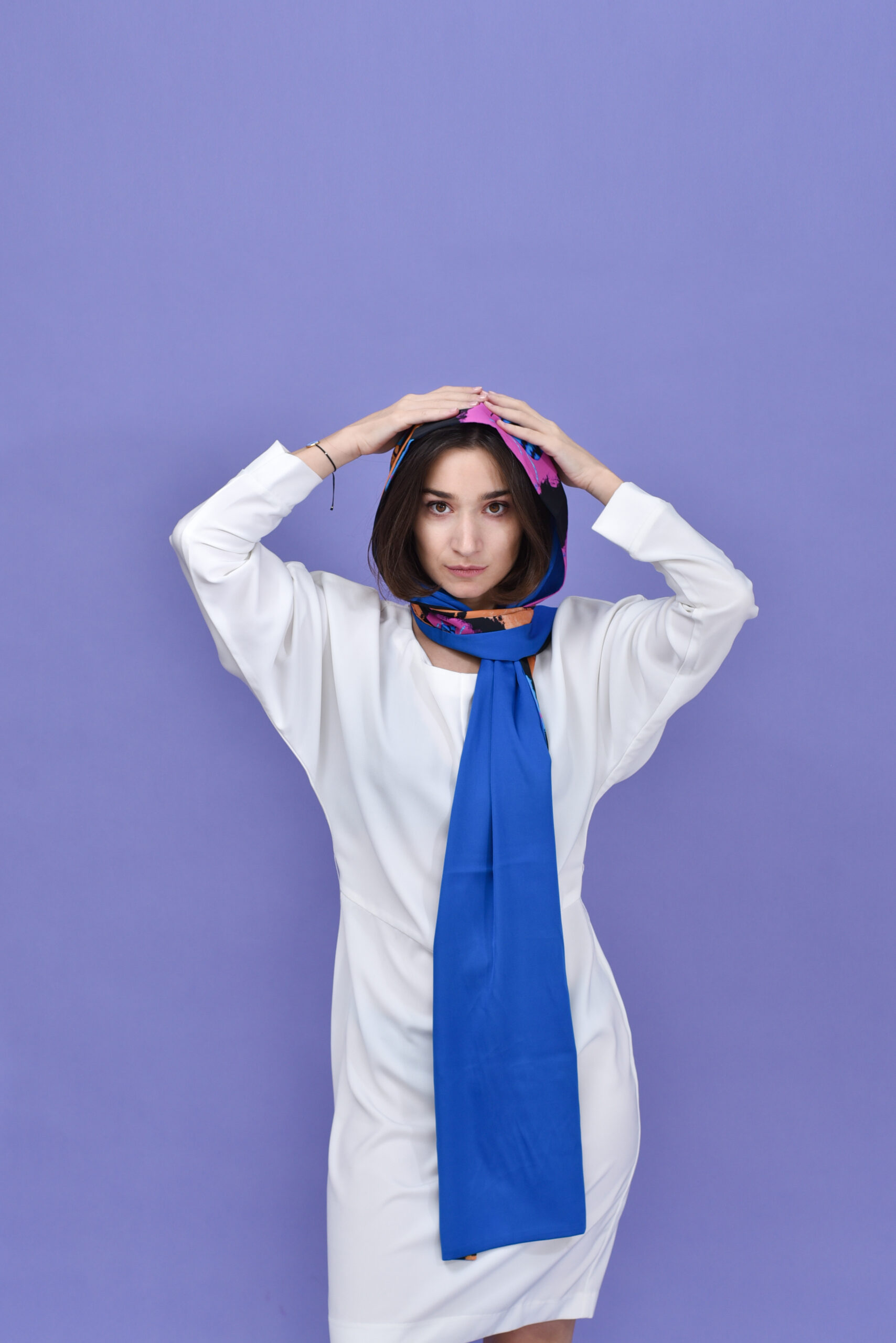 ნაზი და ჰაეროვანი აბრეშუმის ორმხრივი თავსაბურავი. გაიფერადე ყოველდღიურობა.